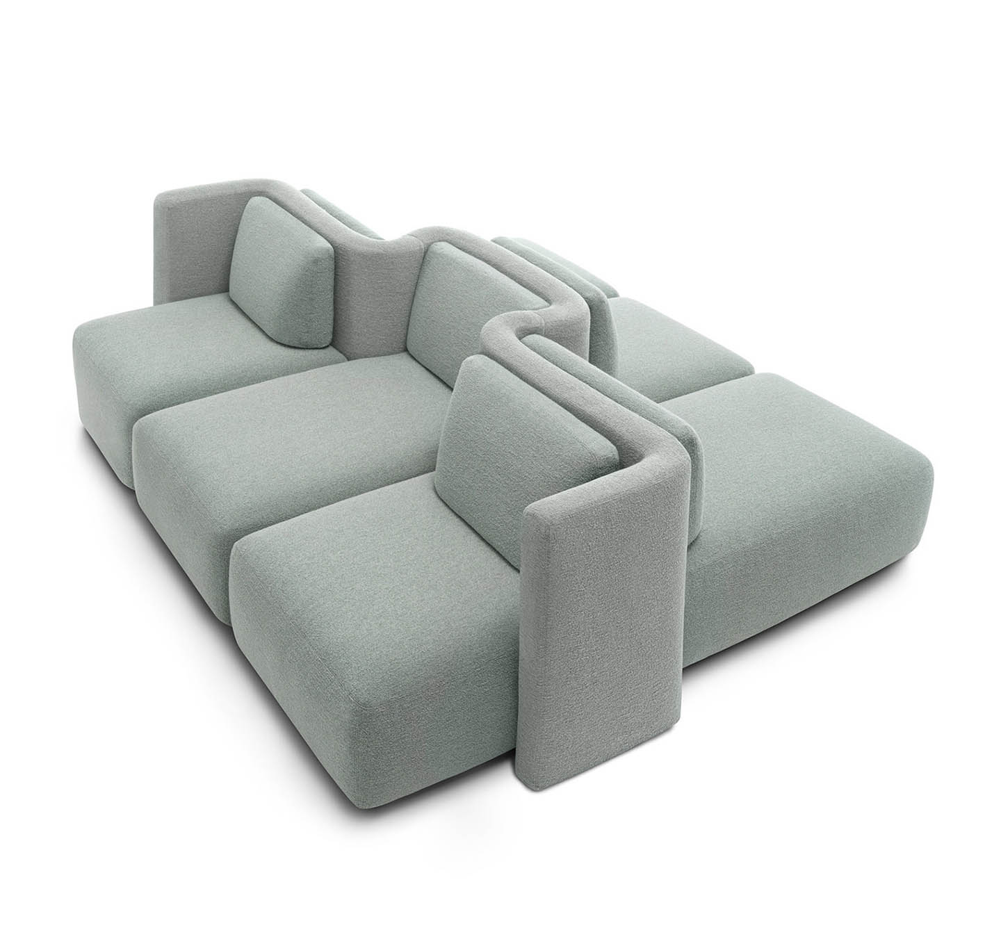 Возможны многочисленные конфигурации, создающие «гибридный» и гибкий диван, с которым можно взаимодействовать.