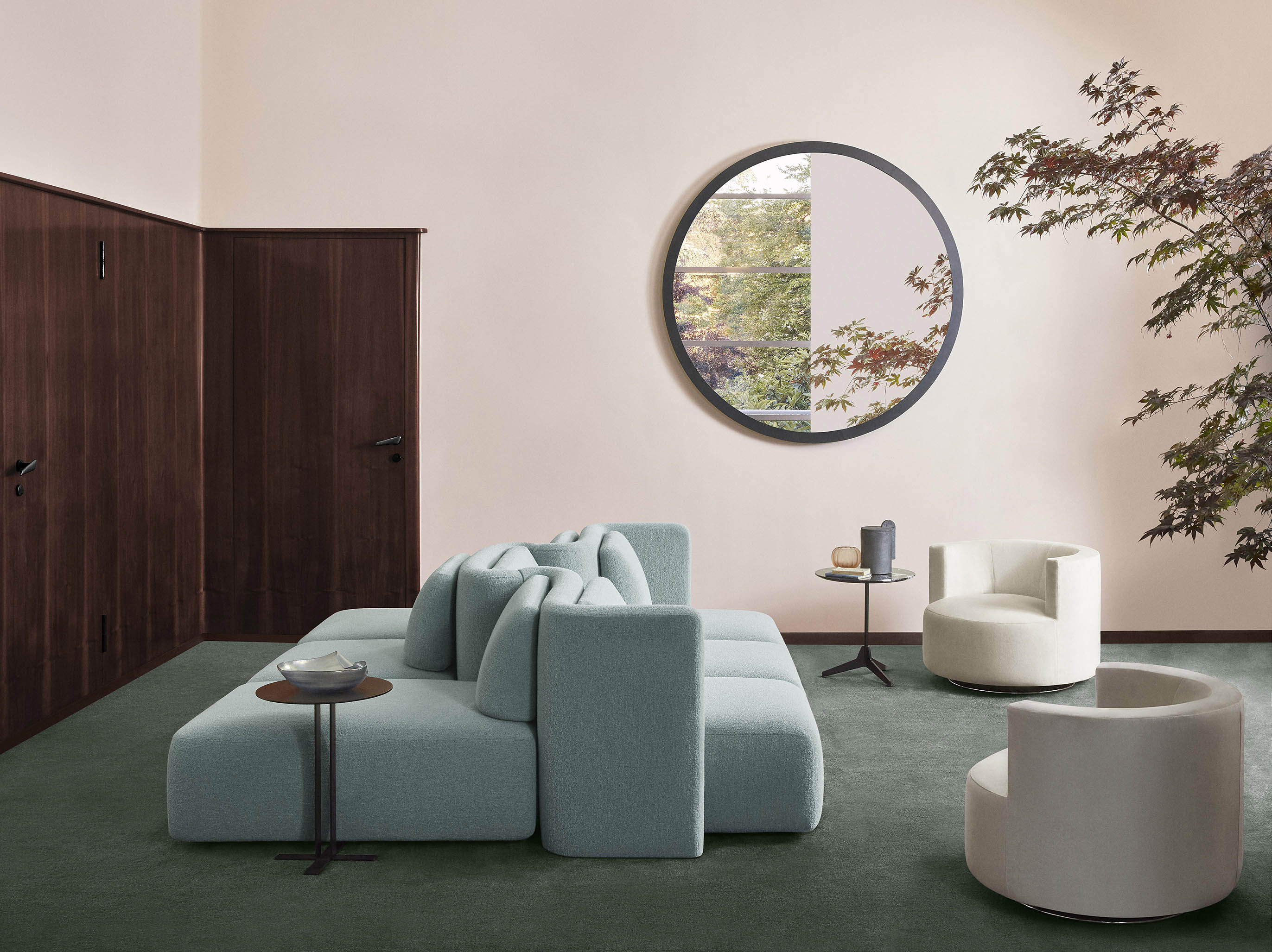 Новая коллекция, отсылая к ретро-футуристической атмосфере диванов 1970-х годов, исследует гибкость мягкой мебели с помощью гендерно-нейтрального, скульптурного и изысканного объёма, который подходит для различных интерьерных решений — от жилых помещений до отелей.