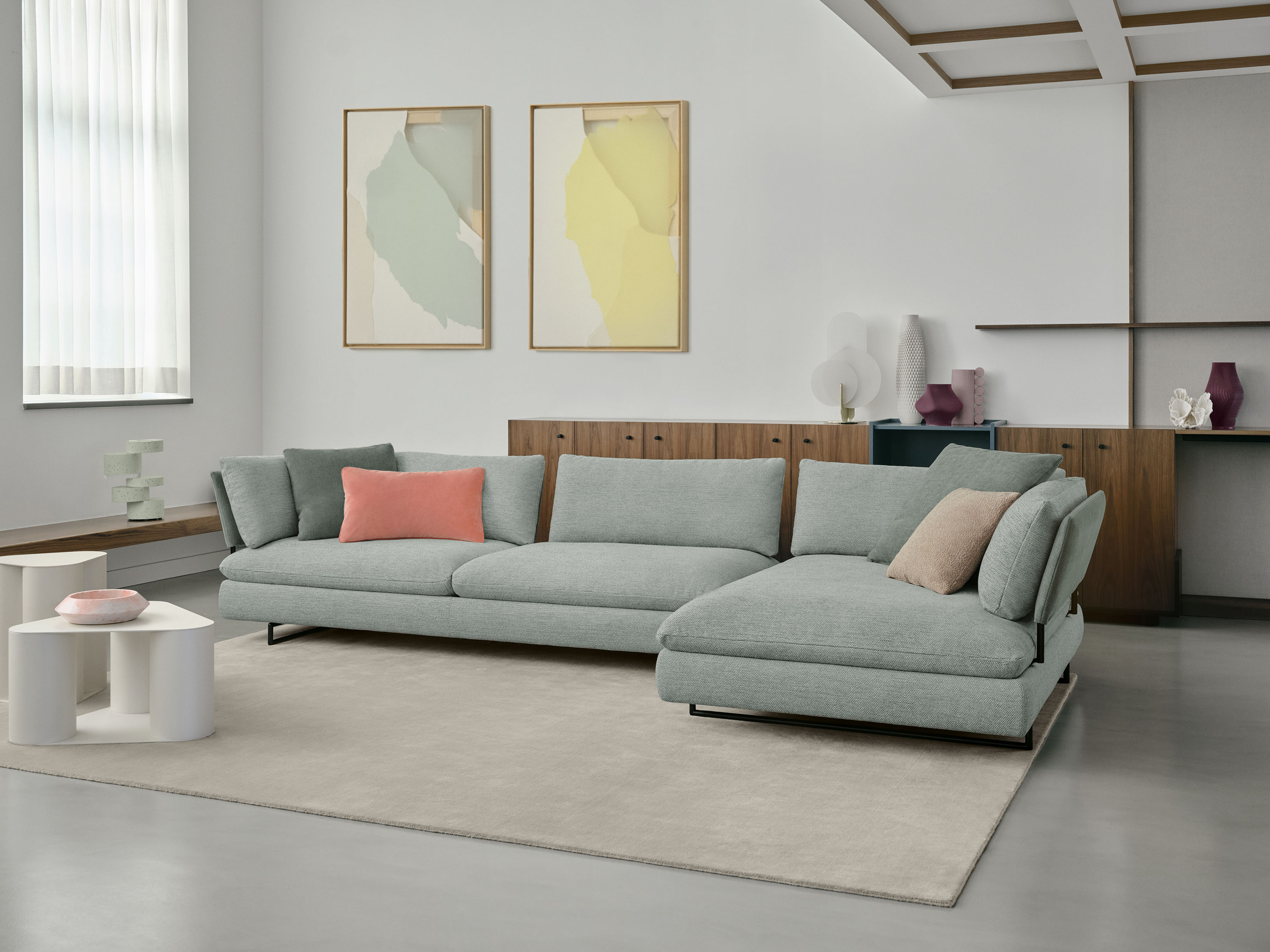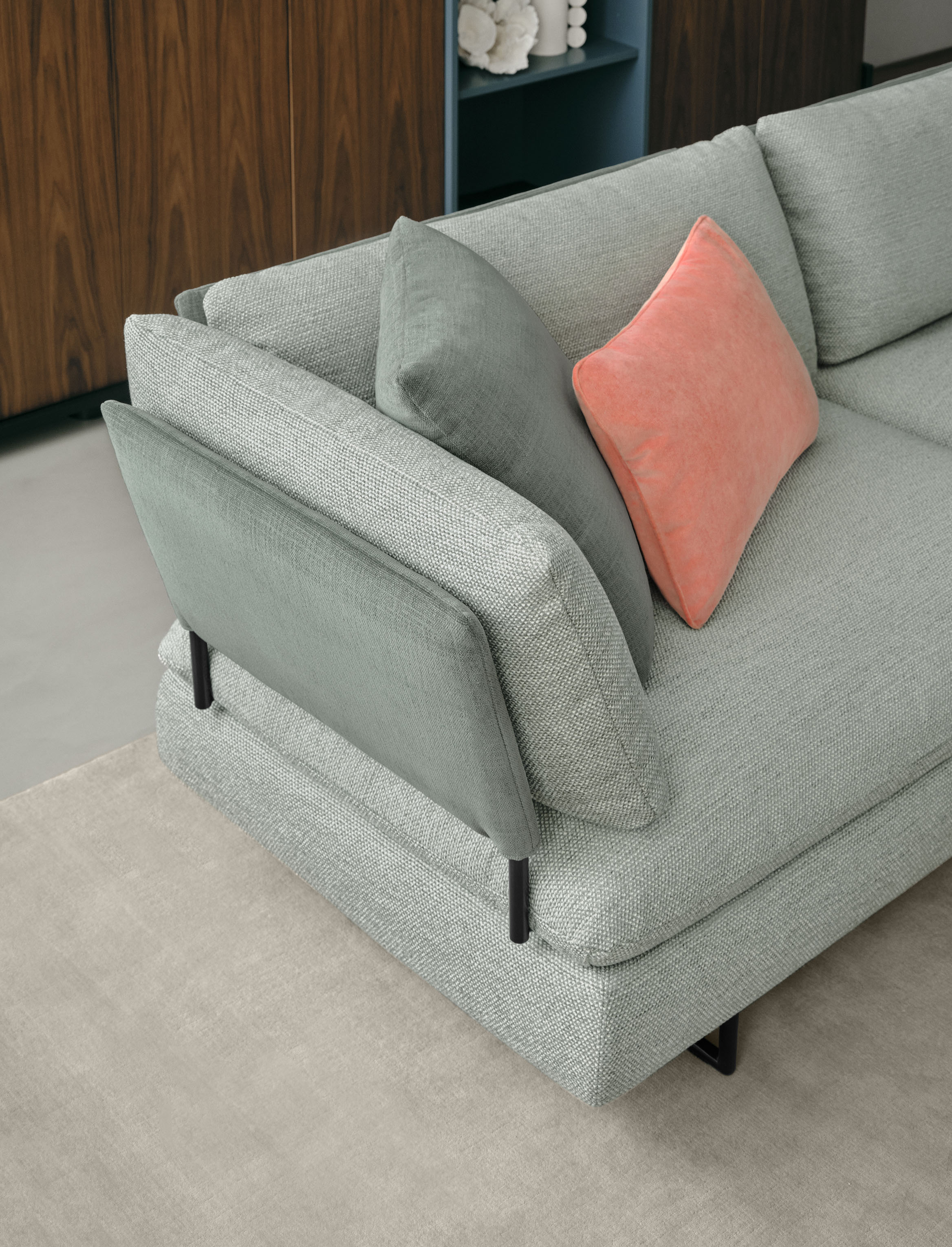 Подушки спинки теперь предлагаются в двух различных вариантах высоты: для обеспечения комфорта плеч предусмотрена более высокая и объёмная версия, тогда как низкая версия обеспечивает более строгую эстетику и располагает к беседе.