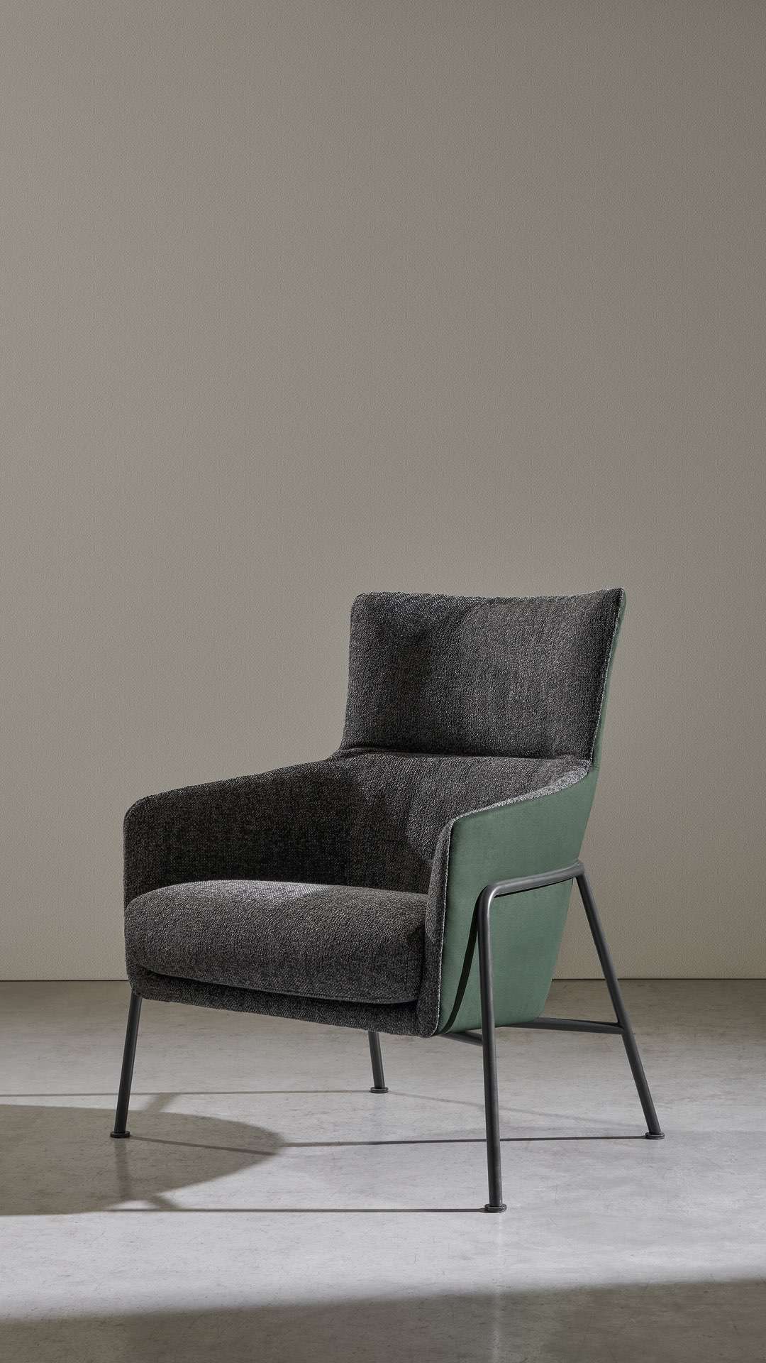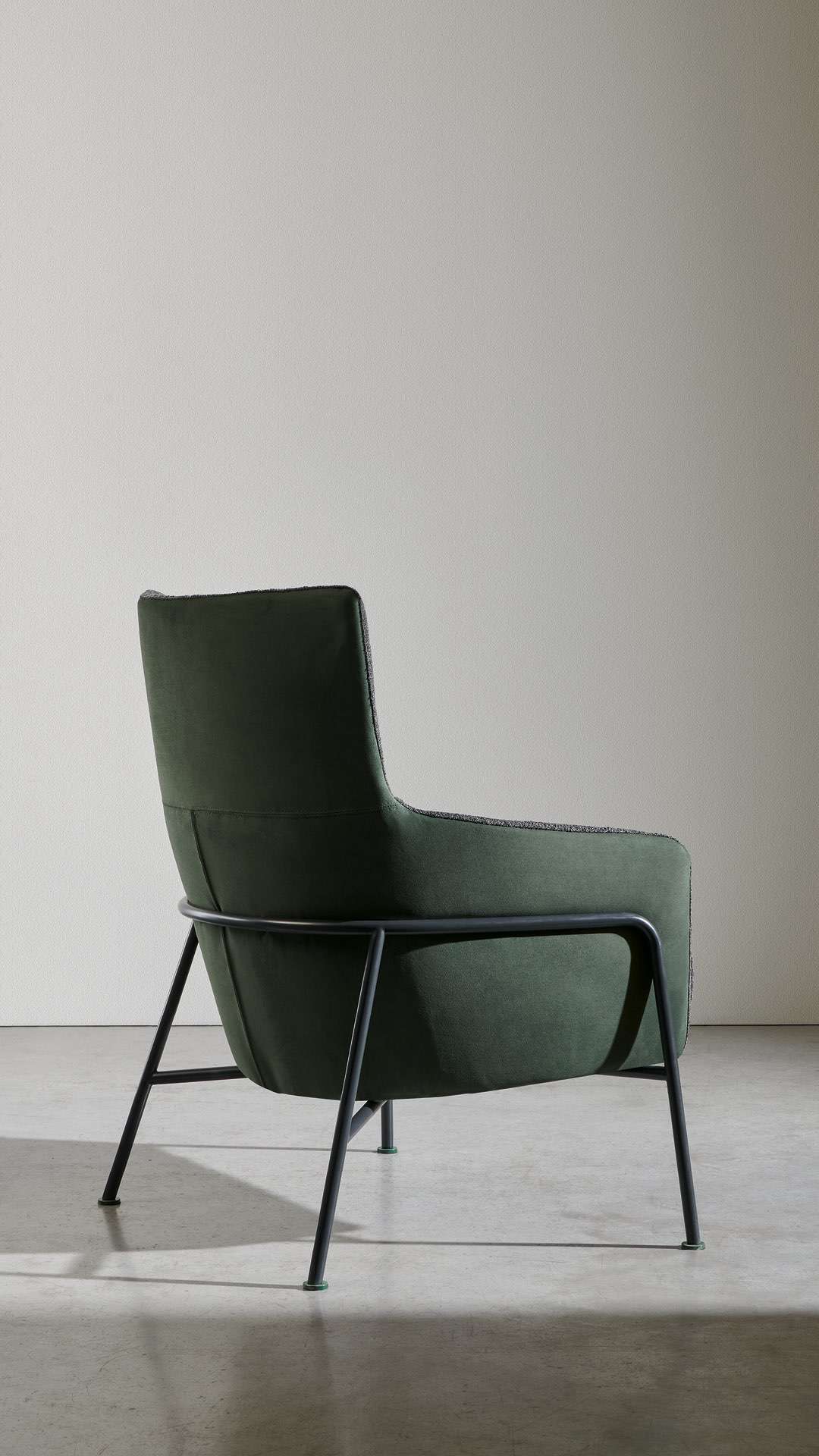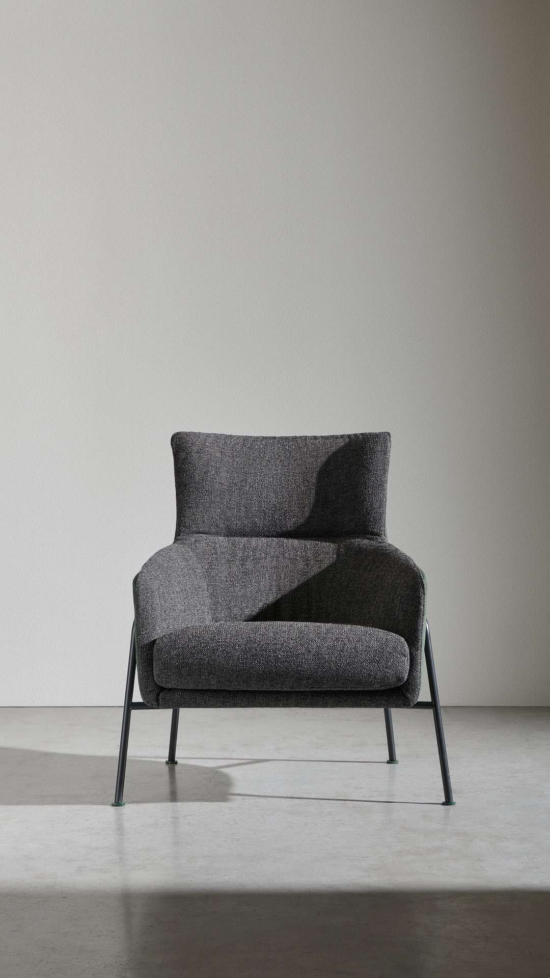Это кресло живёт по одному правилу: простота. Оно с естественной лёгкостью примиряет противоположности, такие как каркас с его чёткими линиями и мягкий наполнитель для максимального комфорта, а также различные материалы, использованные в его конструкции, которые подчёркивают формы.