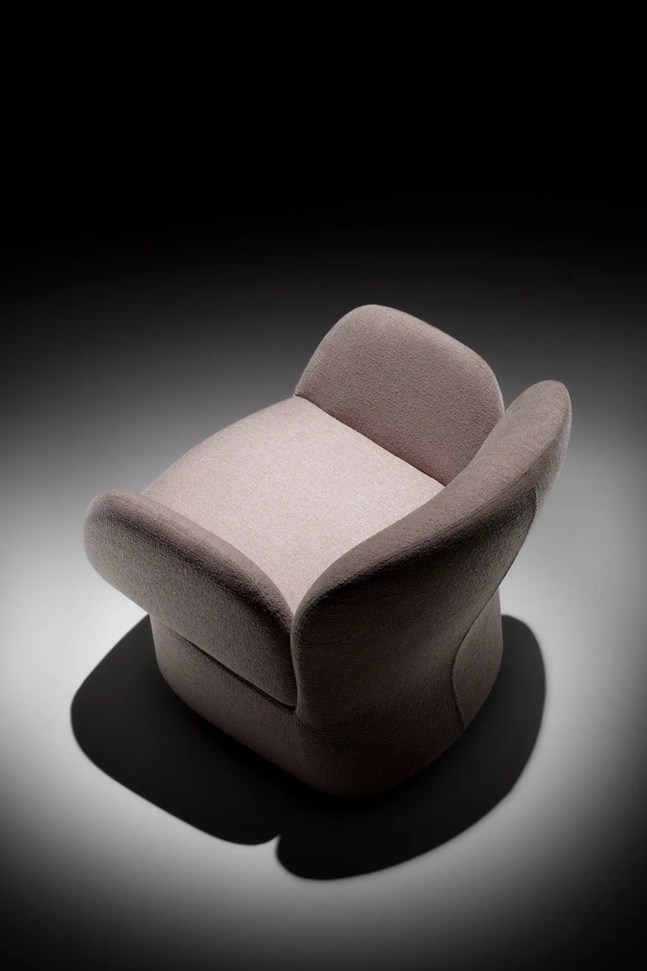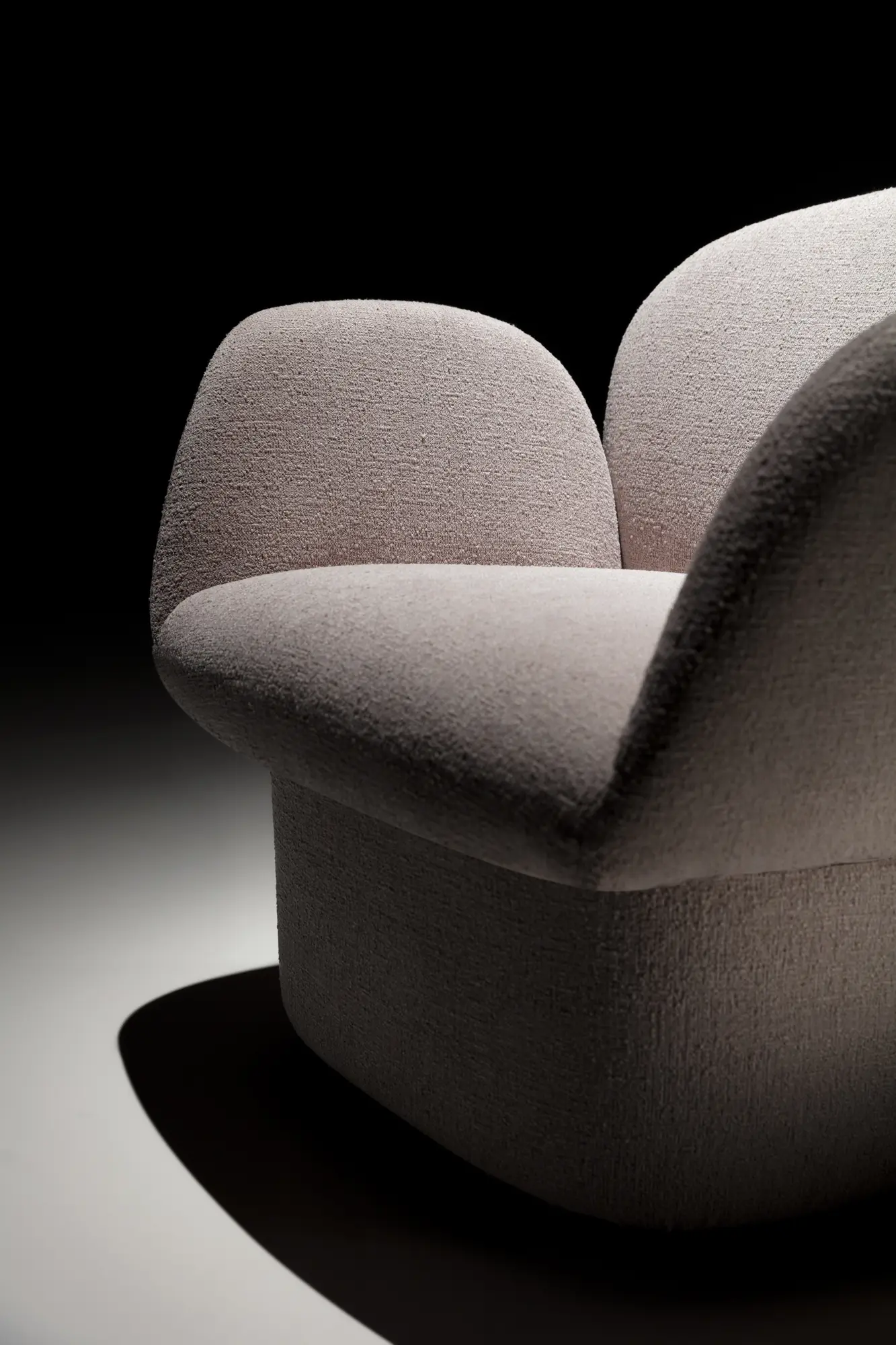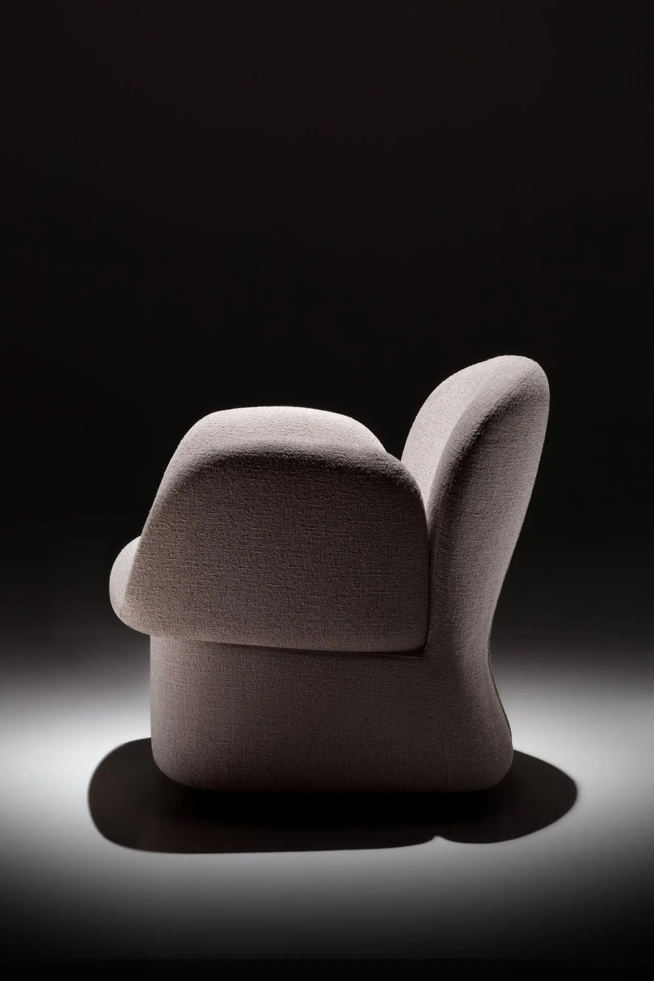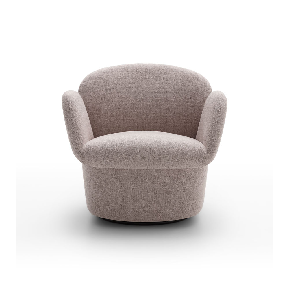 Скульптурный и монолитный вид двух объёмов создаёт интересный контраст с мягкими линиями и обволакивающими формами, которые пересекаются, формируя компактное, но гостеприимное сиденье. Результатом является единый, плавный объём, где спинка и подлокотники сливаются воедино, приглашая к отдыху как в спальне, так и в гостиной зоне.