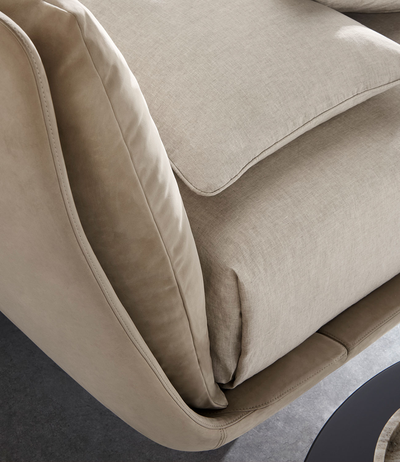 Основательное изделие, намеренно широкое и удобное. Плавность профиля охватывает щедрые пропорции, создавая по-современному целостный ансамбль. Ножки дают дополнительный ключ к пониманию дизайнерского языка, воплощающего всю коллекцию: формальное, но отчётливо заметное дополнение, которое придаёт Biggie индивидуальность и характер.