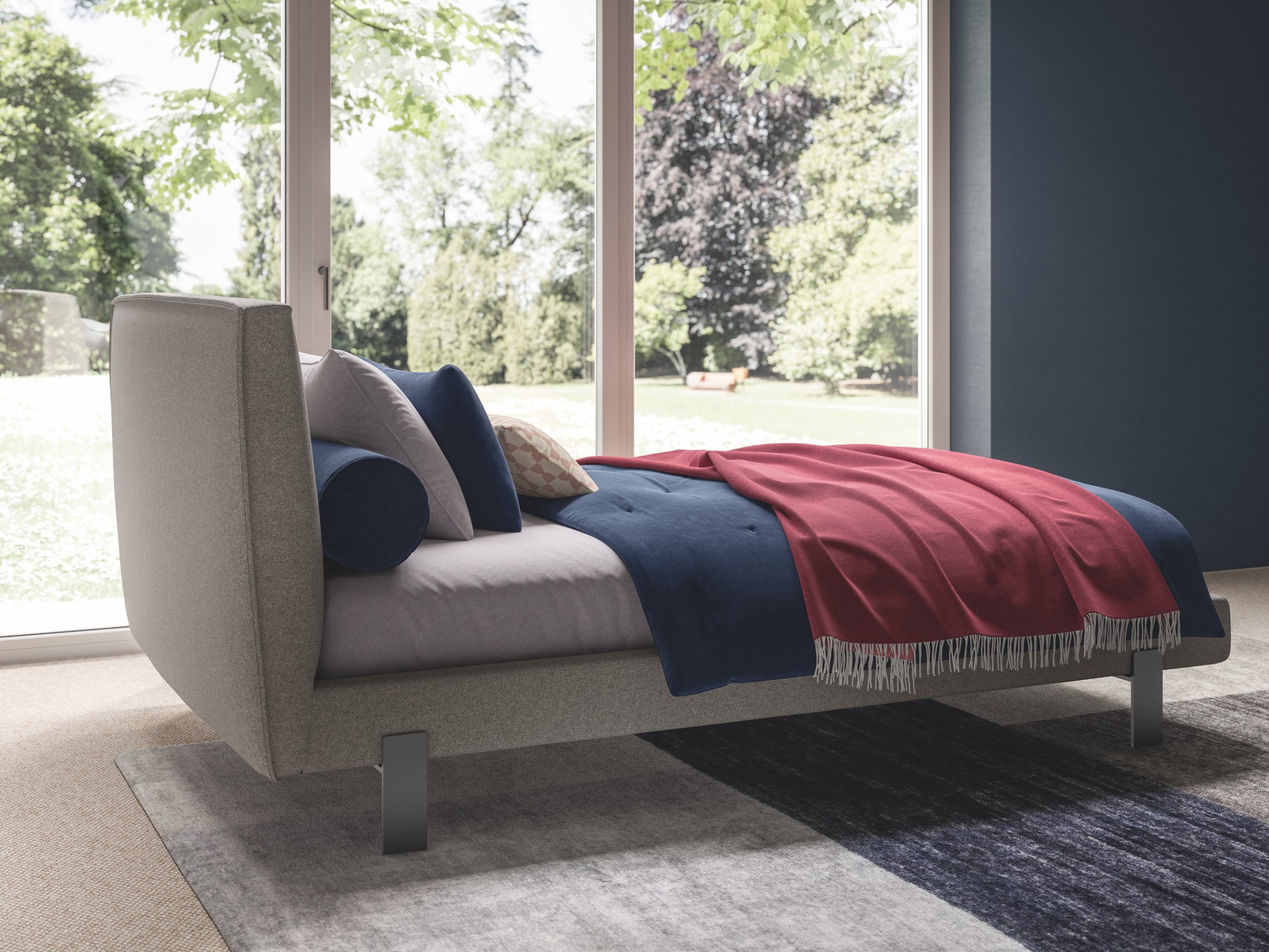 Как следует из названия, Book была создана с учётом интересов любителей книг — тех, кто теряется в историях и отдыхает, отправляясь в долгие путешествия по миру воображения. Изголовье наклонено под правильным углом и слегка изогнуто, напоминая сгиб раскрытой книги — творческая находка Маттео Раньи, которая превращает его в элегантную дизайнерскую деталь.