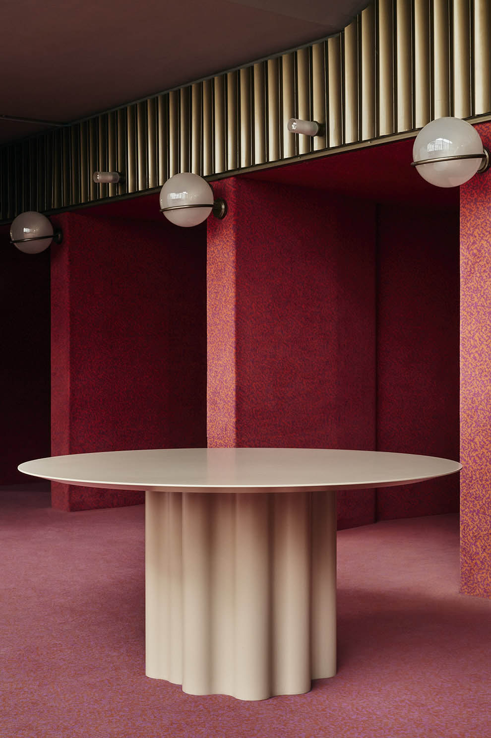 Teatro Magico — первый стол Saba — является сценической декорацией для домашней и контрактной среды. Мягкость ткани, переосмысленная в основании стола, отсылает к сущности компании. Комбинация оснований, соединённых или раздельных, подчёркивает композиционную свободу скульптурного предмета мебели, который становится молчаливым главным героем пространства. Столешница, чистая и лаконичная, предлагается в различных формах и размерах — круглых и овальных — чтобы сопровождать разные истории застольного общения.