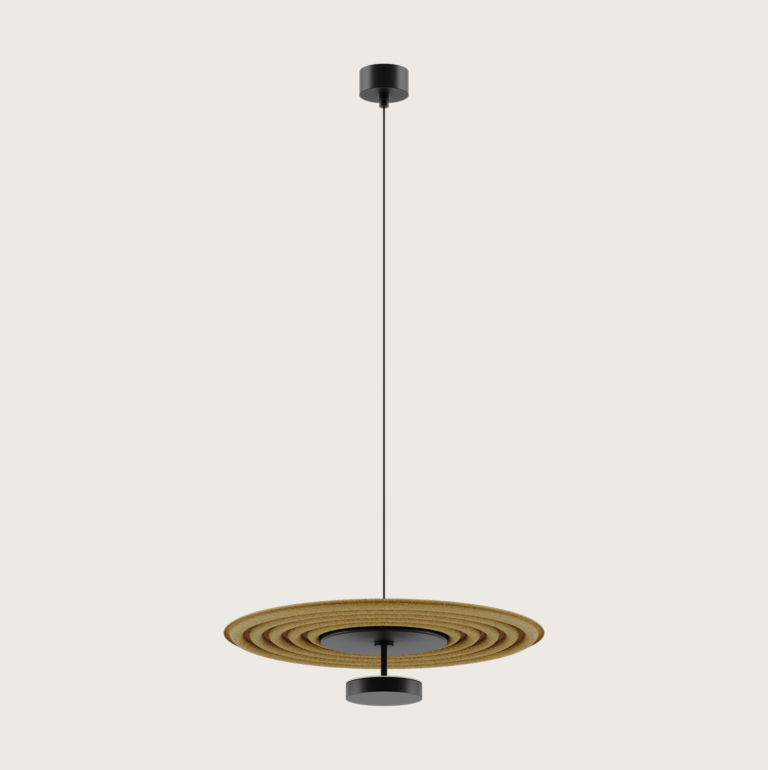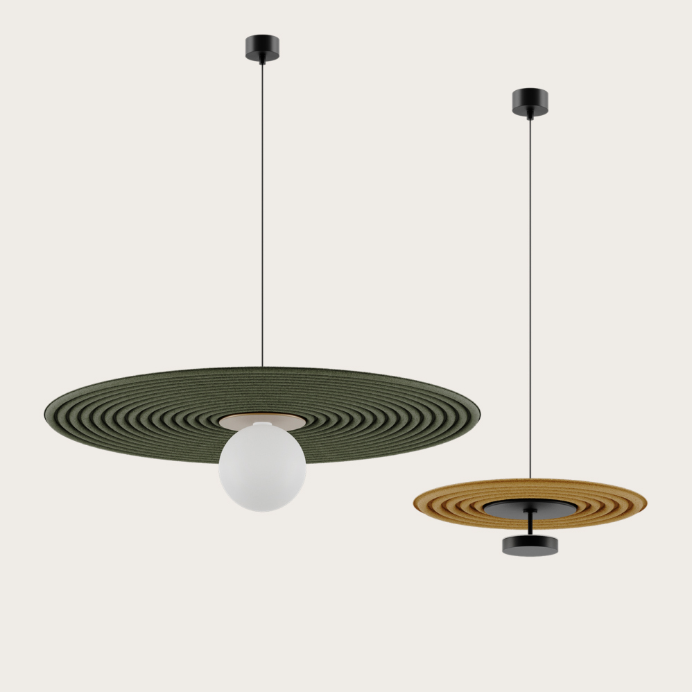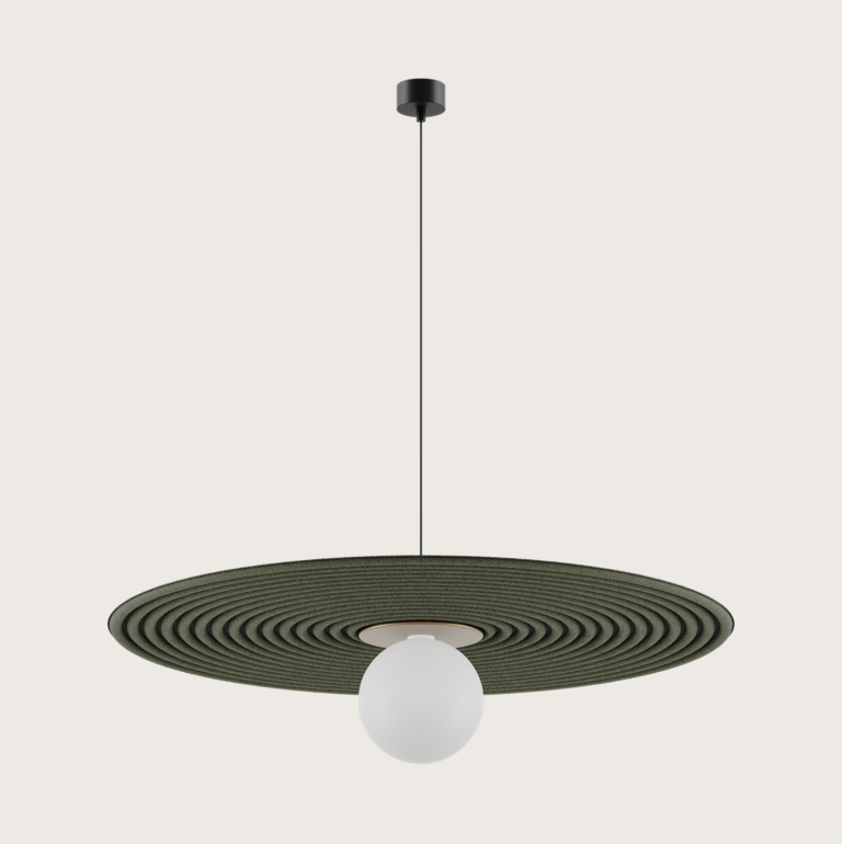 Подвесной светильник Tico от дизайн-студии AC Studio — это современное решение для тех, кто ценит акустический комфорт и эстетику. Модель сочетает в себе изящную металлическую подвеску и декоративный диск из акустического материала, который не только придаёт светильнику узнаваемый облик, но и помогает улучшить акустику в помещении.